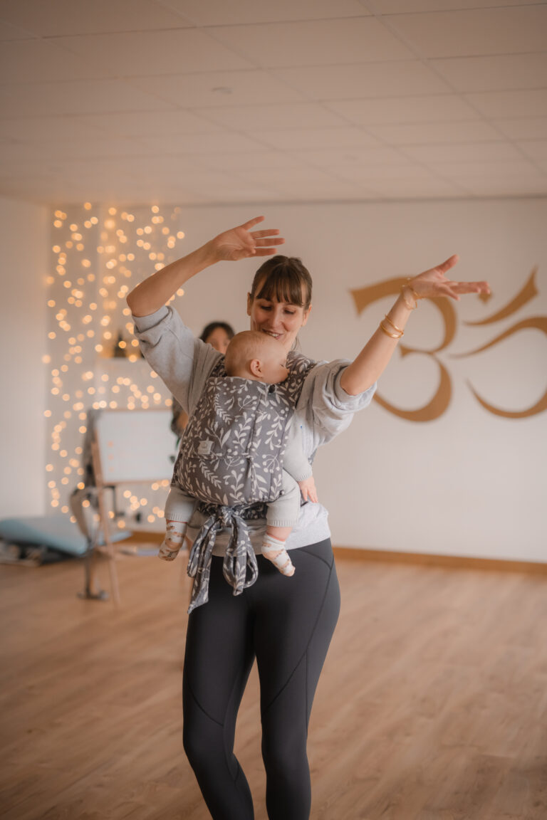 Vient danser avec ton bébé le dimanche matin à Séné à Kalyana Yoga : une activité à faire avec son bébé, rencontrer d’autres mamans et se muscler en profondeur tout en s’amusant !