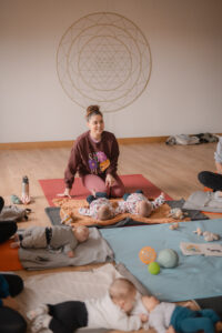 La session commence par un cercle de paroles , de la danse au sol avec son bébé et se finit avec les bébés en portage physiologique.